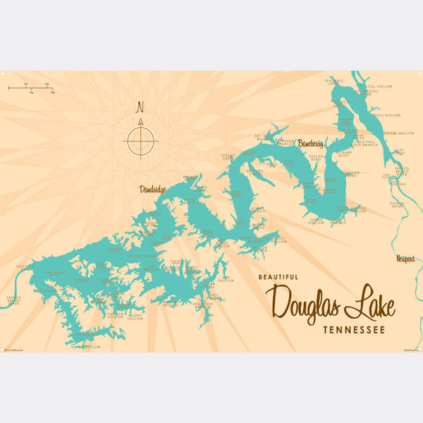 Douglas Lake Tennessee, Wood Mounted Metal Sign Map Art – Lakebound®